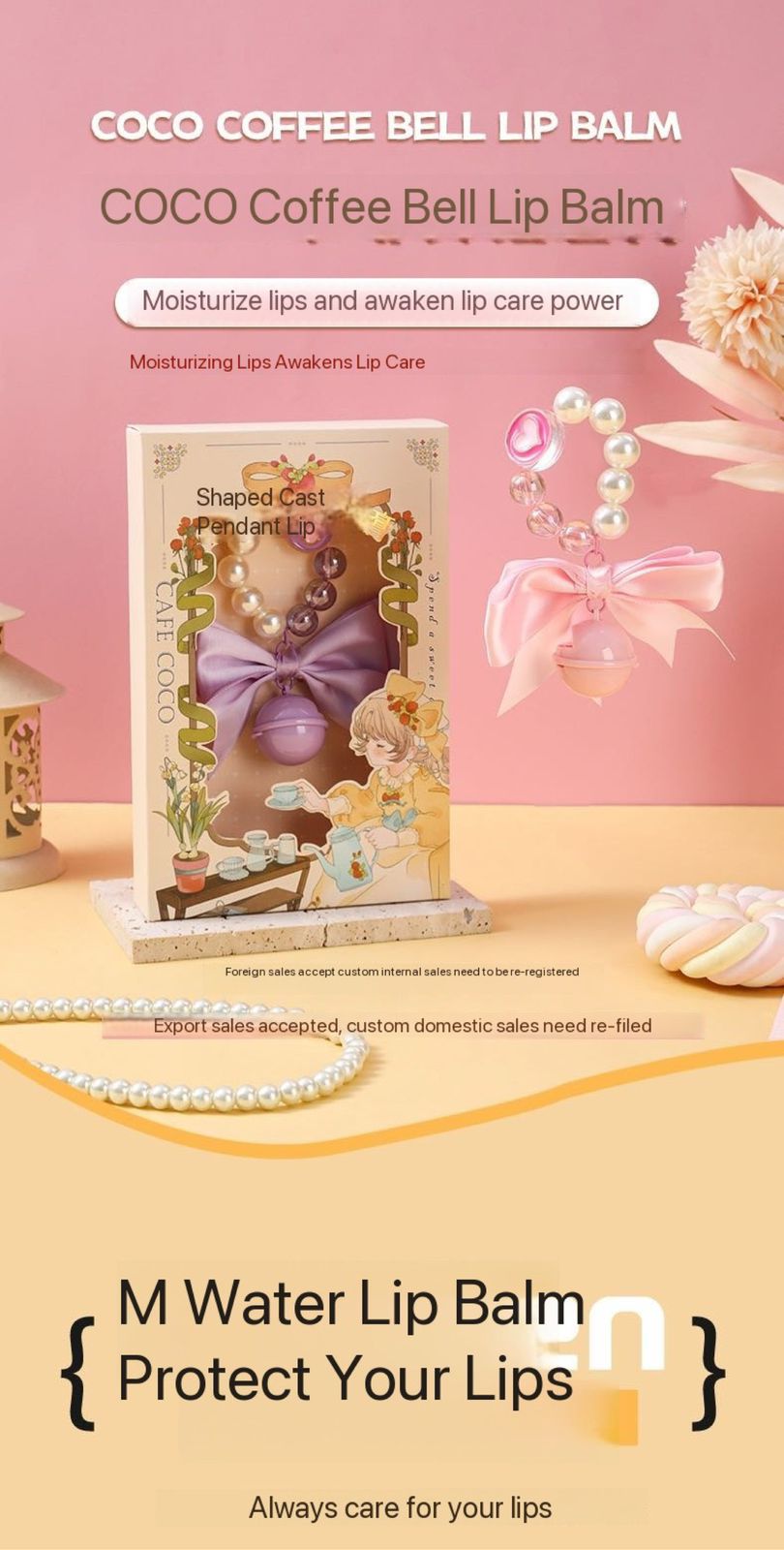CAFE COCO Portable Bell Lip Balm delivers intensive moisture to delicate lip skin with its water-rich formula. The compact bell-shaped design features a convenient mirror surface, making touch-ups effortless throughout your day. Enriched with hydrating ingredients, this lip balm provides long-lasting nourishment that prevents dryness and maintains soft, supple lips. Perfect for on-the-go beauty routines, the replenishment formula ensures your lips stay moisturized and protected. Slip this portable essential into your bag for anytime lip care that combines functionality with elegance.