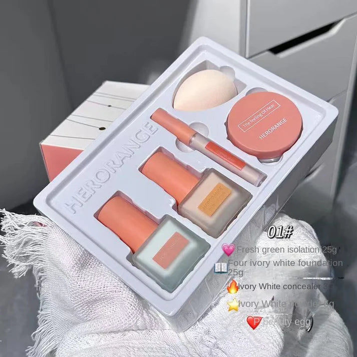 HERORANGE Isolation Cream Liquid Foundation Concealer Loose Powder Pack of 5 Makeup Kit