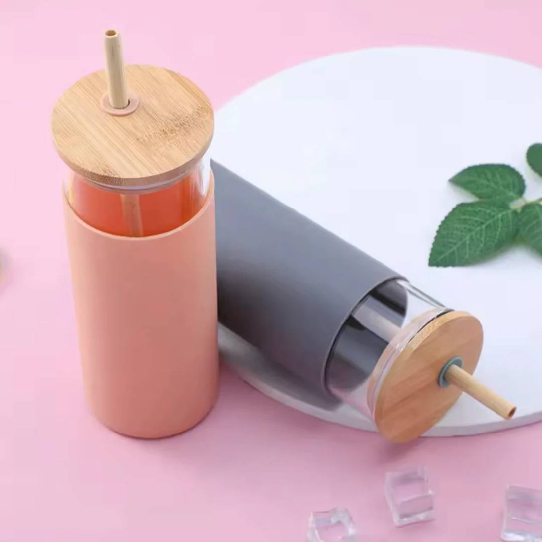 This 500ml tumbler glass water bottle combines elegance and functionality, featuring a durable high borosilicate glass body that is both heat and cold resistant. Its sleek silicone sleeve provides a secure grip and added protection, while the natural bamboo lid adds a touch of sophistication. This water bottle includes a reusable straw for easy sipping, making it perfect for on-the-go hydration. Ideal for both hot and cold beverages, it's a stylish and eco-friendly choice for anyone seeking a practical yet aesthetically pleasing drinkware solution.