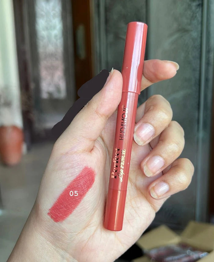 Achieve precise, defined lips with the Hudamoji Lip Pencil Crayon Perfect Lip Pencil. Designed for expert application, this lip pencil offers smooth, long-lasting color that enhances your lip shape effortlessly. Its crisp, rich pigmentation glides easily for sharp outlines or full lip coverage, ensuring a polished and professional finish every time. Ideal for creating a flawless base to extend the wear of your favorite lipsticks or to wear alone for a bold, natural look.