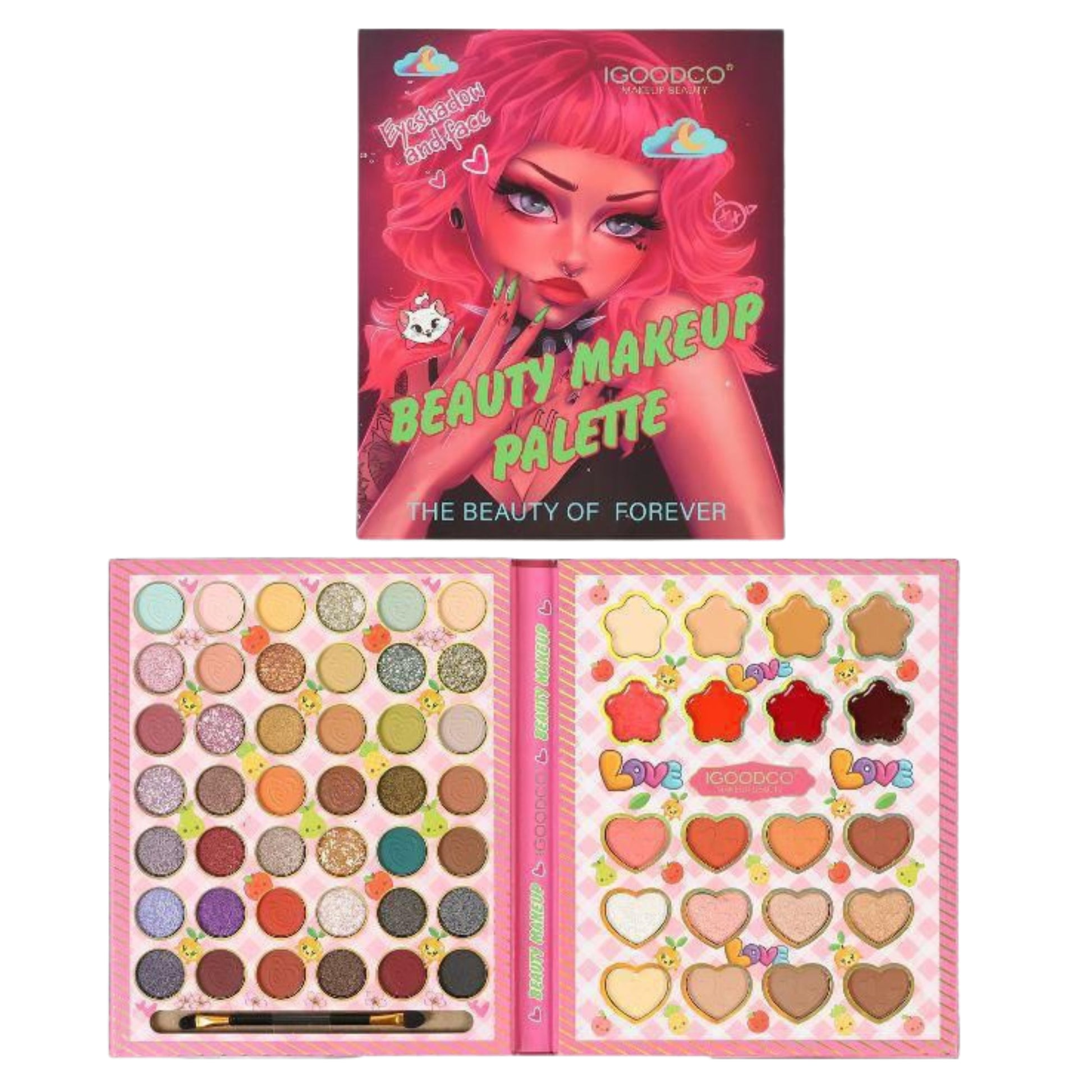 Discover timeless color artistry with the Igoodco The Beauty Of Foreever Makeup Palette. This expertly curated collection features a versatile range of richly pigmented eyeshadows designed to complement every skin tone and occasion. From subtle everyday neutrals to bold statement shades, each color blends seamlessly for professional-quality results. The palette's premium formulation ensures long-lasting wear and exceptional color payoff, making it an essential addition to any makeup collection. Create endless looks with one sophisticated palette.