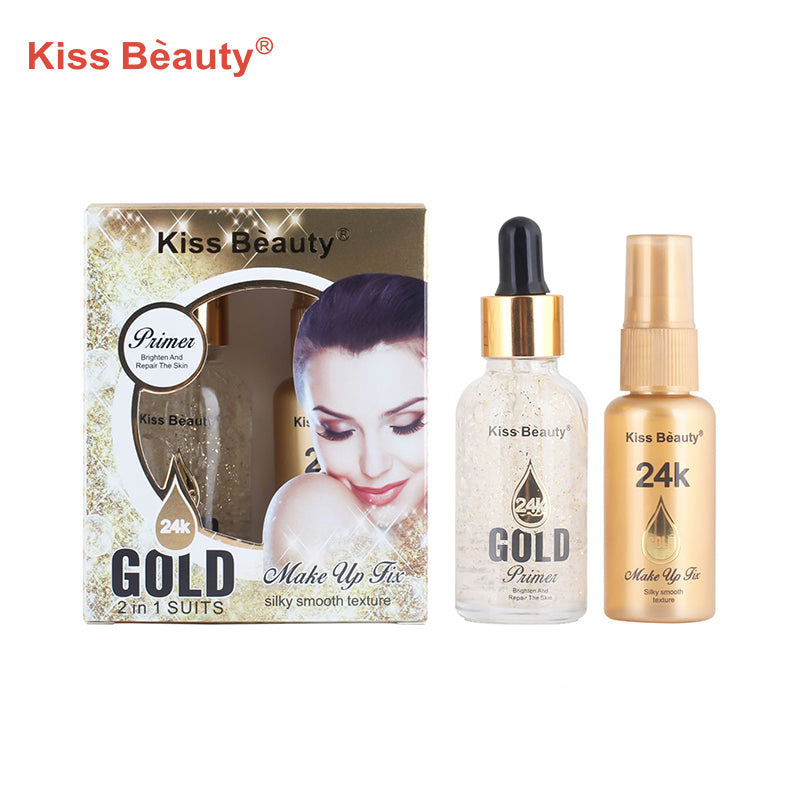 Kiss Beauty 24K Goldzan Primer Oil is an embellishing make-up base sprinkled with pure 24-carat gold flakes. Like the most luxurious jewellery pieces, the precious flakes were crafted into ultra-sparkling and ultra-reflective particles, then dispersed in a hydrating smoothing gel. The complexion is beautified. It glows with divine and unfailing radiance. Skin is smooth, supple and satiny, ready for perfect, enhanced and long-lasting make-up.
