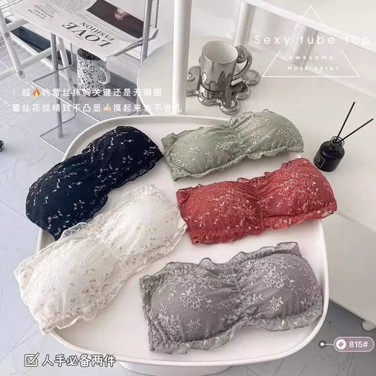 Lace Printed Strapless Padded Bra Free Size Adjustable From 28to34 Color