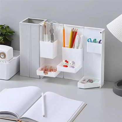 This gathering box is foldable and easy to move so you can fold or unfold freely and save space when not in use. This desk pot is not only a good stationary holder , but also a dressing case. This brush barrel is divided into different spacer-layers and you can put school,office and cosmetic applicators in various size. It helps to sort out without effort and make full use of space. You can also carry it to other place without effort. Minimizes space usage and keep the stuff you need at hand, better planning and utilization of your desk organizer space. This desk organizer is not only perfect for storing your desktop stationery such as pen, pencil, marker, paper clip, note, ruler, eraser, scissors, letter openers and many other desk widgets, but also great for storing your makeup brushes, nail polishes, lipsticks and other small personal items, You can use it to organize any other daily necessities.