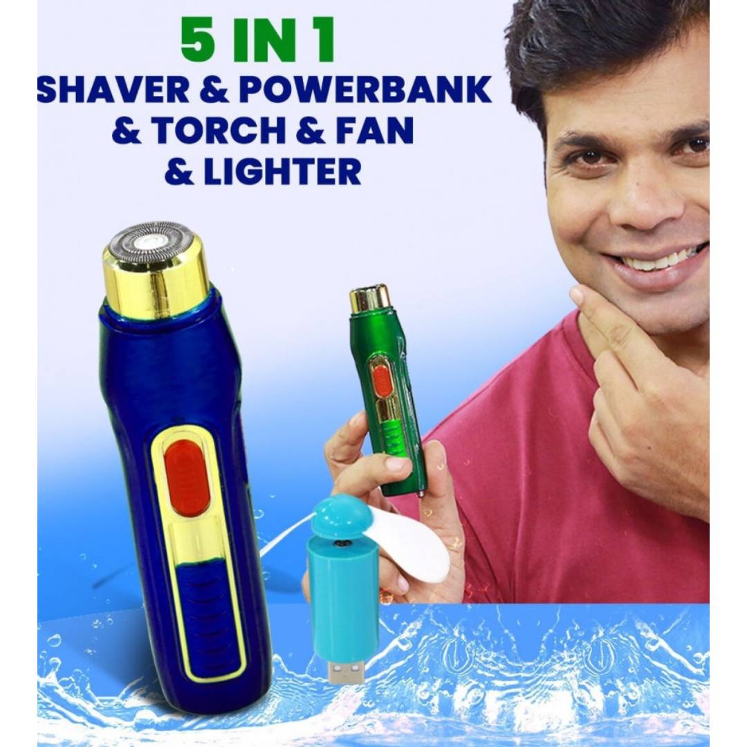 Multifunction 5in1 Trimer 4D Shaver Flashlight Cigarette Lighter Handheld Electric USB Fan