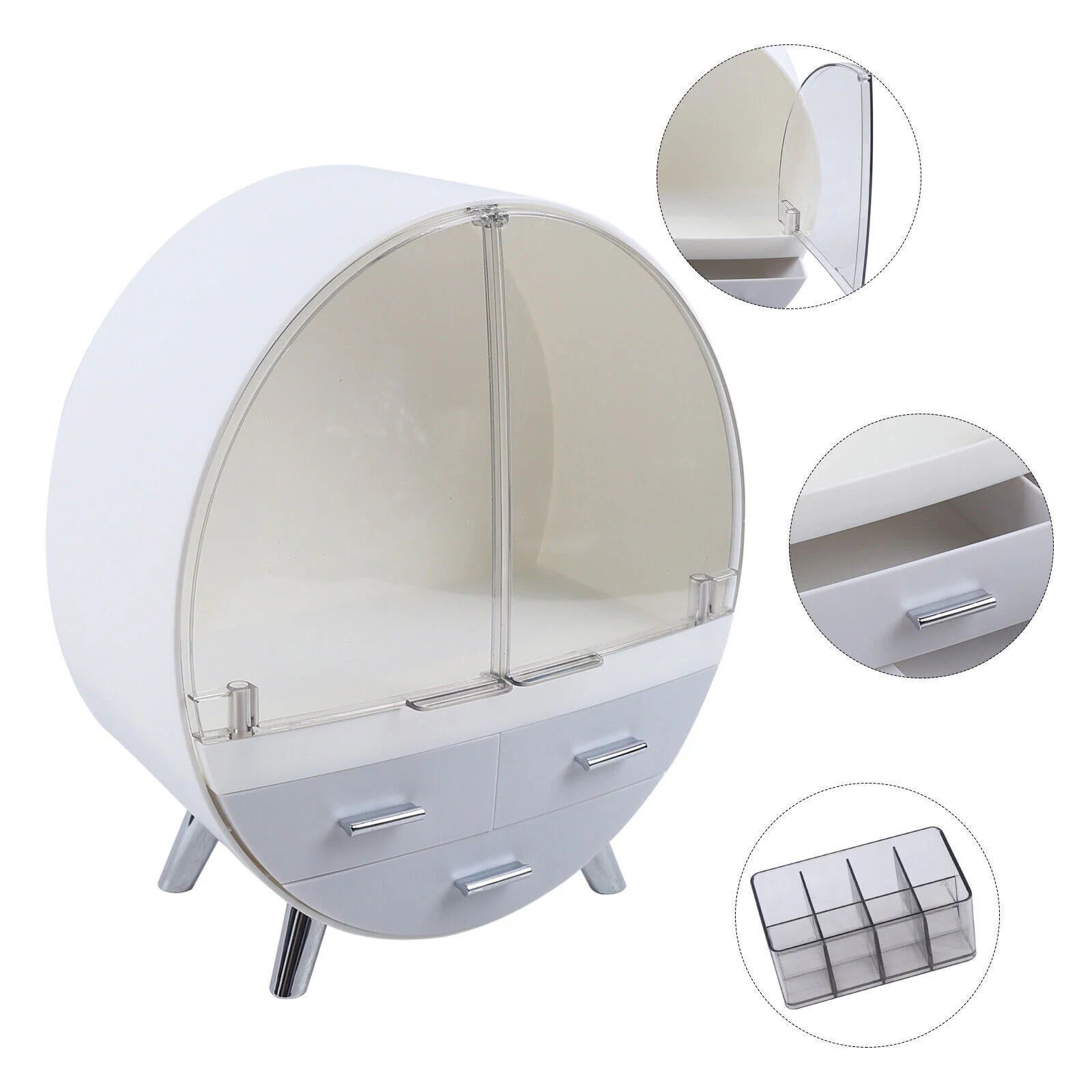 This Multipurpose Dustproof Cosmetic Organizer allows for easy organization and storage of your vanity essentials. With 3 drawers and a stand, it provides ample space for all your makeup needs. The dustproof feature ensures your products stay clean and protected. Keep your vanity clutter-free and efficient with this organizer.