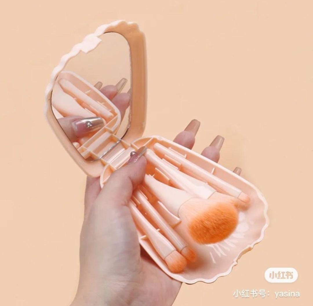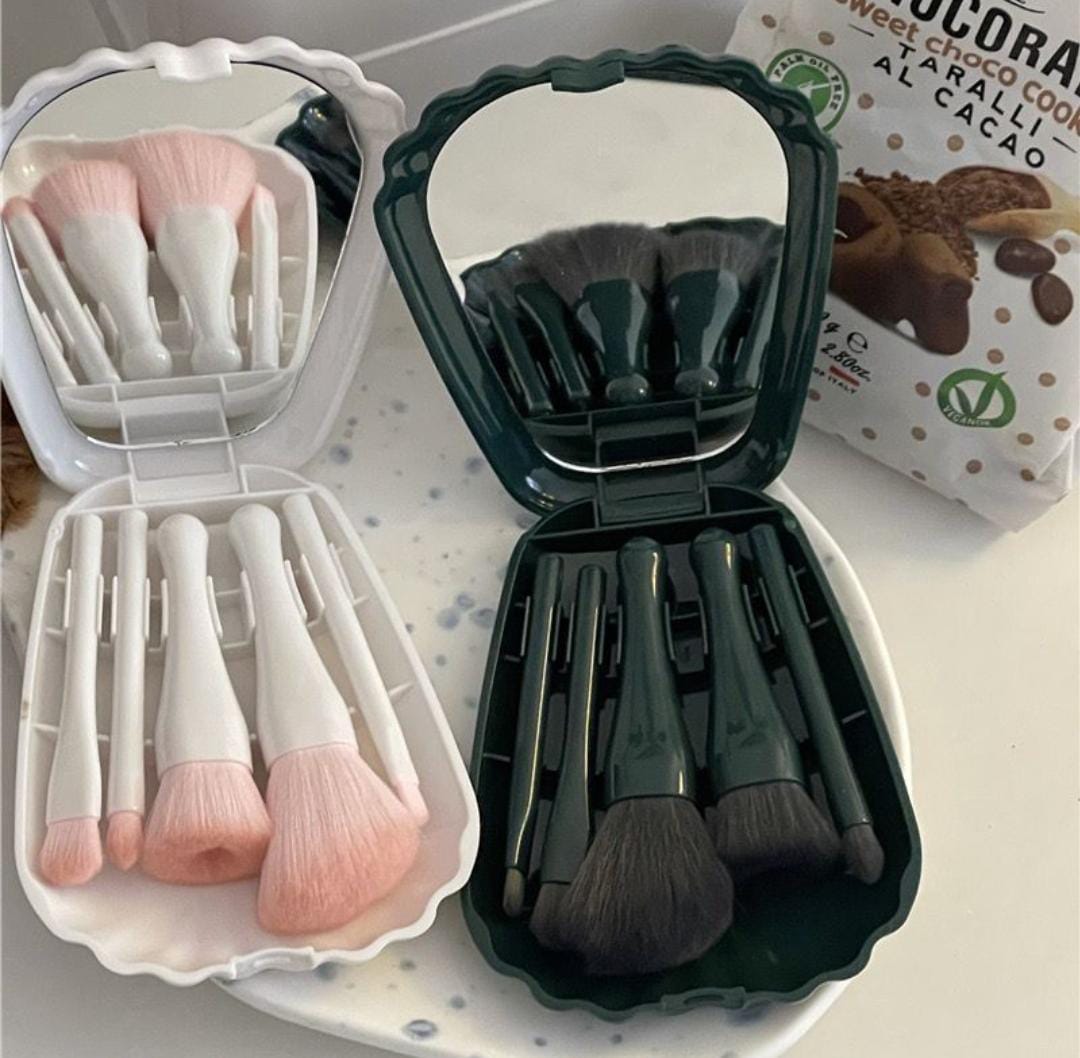 New Elegant 5pcs Shell Mirror Plastic Box Brush Set