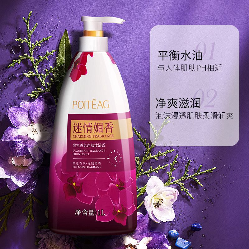 Indulge in the luxurious experience of POITEAG Charming Fragrance Cleansing Body Wash, a shower gel designed to captivate your senses while providing moisturizing benefits.