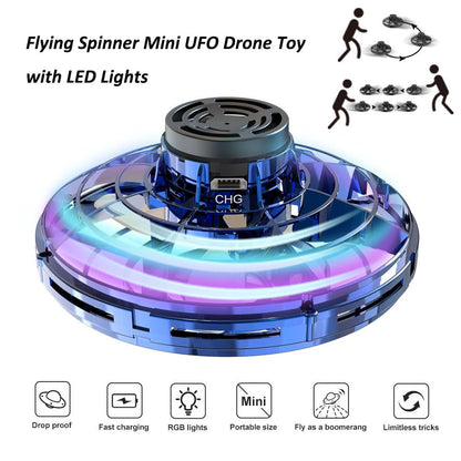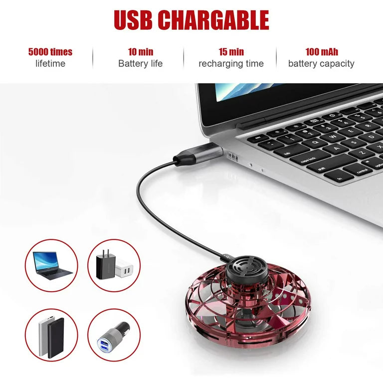 VERY SIMPLE TO USE: It looks like magic but all you need to do is to spin it up and give it a toss! A miniature internal motor gives it the power to perform wild tricks. Different throwing speeds and angles allow different flight paths, tricks, and high-speed maneuvers. Turn on the power button, hold the center axis and spin the wheel to start ,If you wish to stop playing, just grab it and stop the spinning