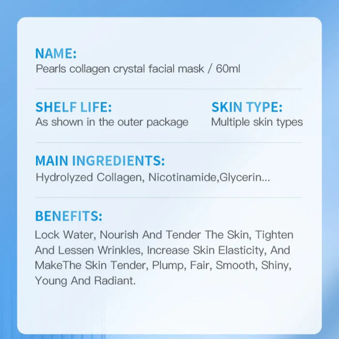 Sadoer Pearl Collagen Crystal Facial Mask delivers intensive hydration and brightening benefits in a convenient sheet format. Infused with pearl extract and collagen, this 60ml mask targets dullness and uneven skin tone while deeply nourishing the complexion. The crystal-enhanced formula works to improve skin elasticity and luminosity with regular use. Ideal for those seeking professional-grade skincare results at home, this mask suits all skin types and provides visible radiance within minutes of application.