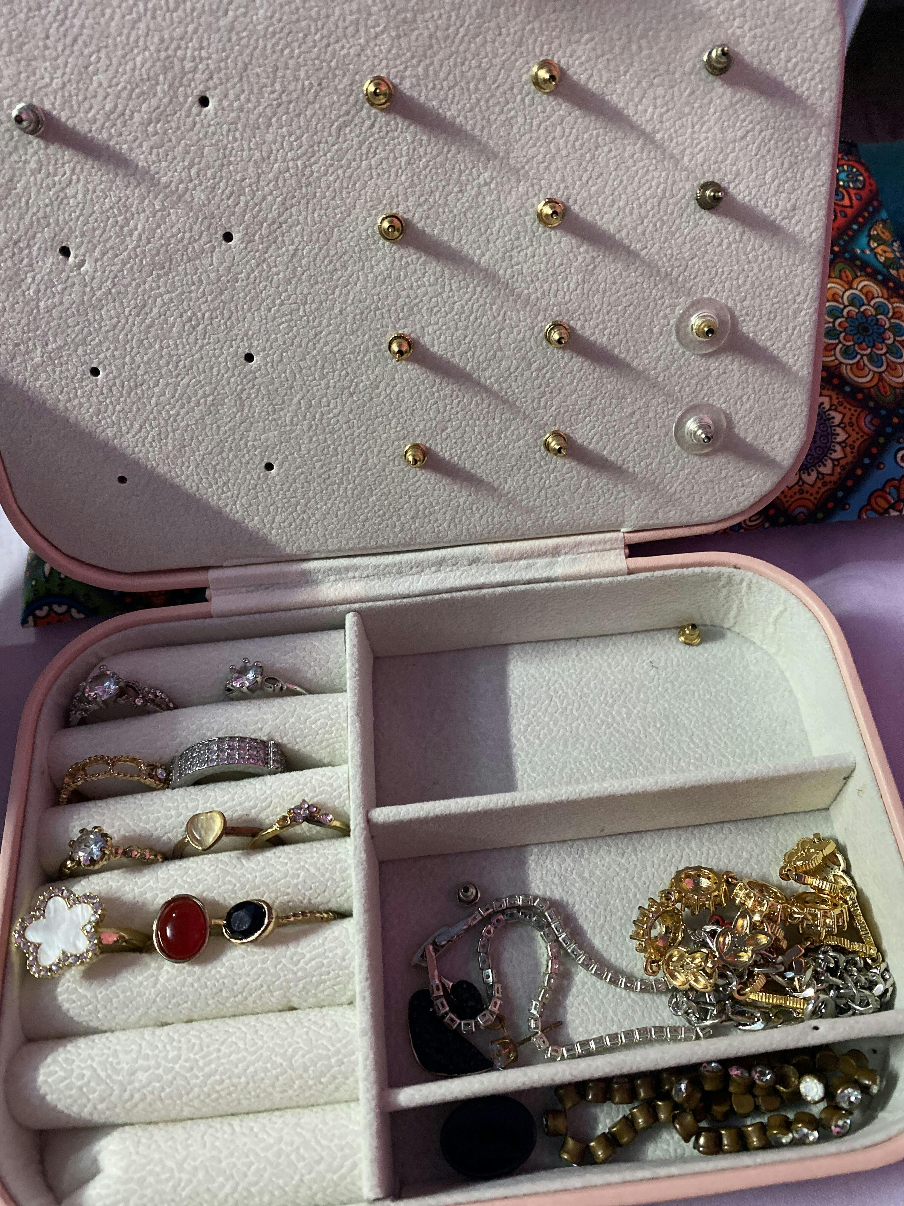 This Jewellery storage case easy to carry when travelling, dating and business trip. Great Gift Idea Small Jewellery organizer box for rings, necklaces, earrings, ear studs, cufflinks and other little Jewellery. It would protect your Jewellery inside against dust, fingerprints, scratches, damages